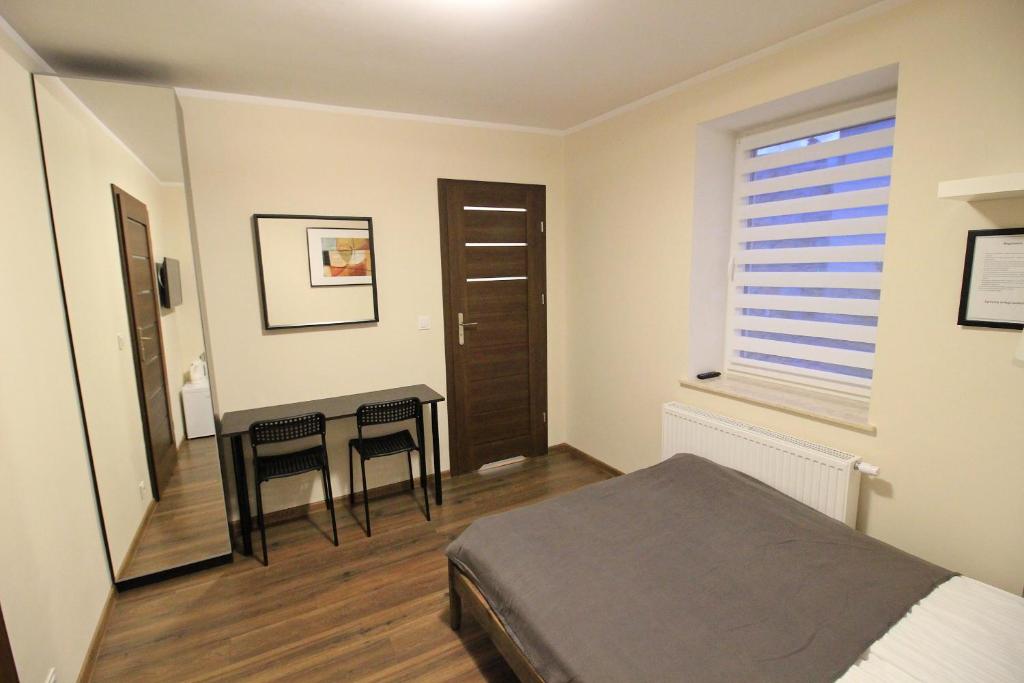 Studio. The studio features heating, as well as a private bathroom featuring a shower. The kitchenette is equipped with a stovetop, a refrigerator and kitchenware. The studio provides a private entrance, a wardrobe, an electric kettle, a flat-screen TV, as well as garden views. The unit offers 2 beds. Studio - 4 osobowy. Powierzchnia pokoju ok.: 25 mkw. ;